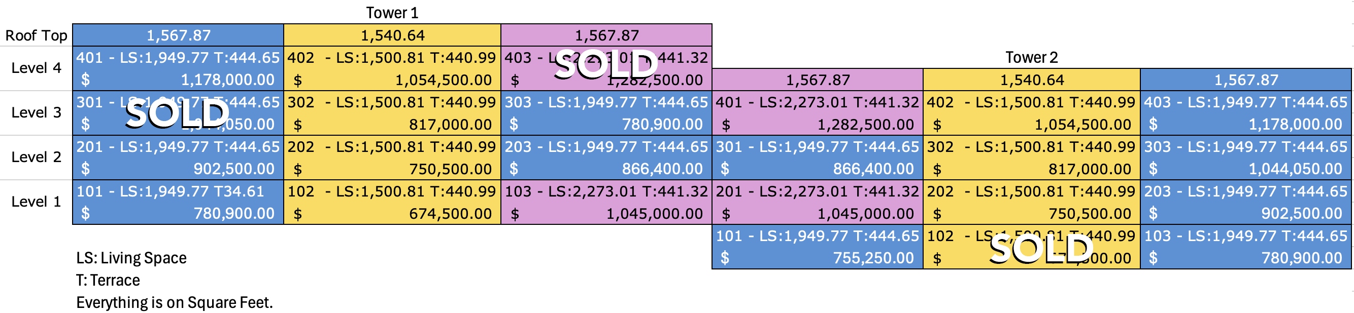 PRICES IN USD, LEVEL 4 HAS A PRIVATE ROOF TOP.